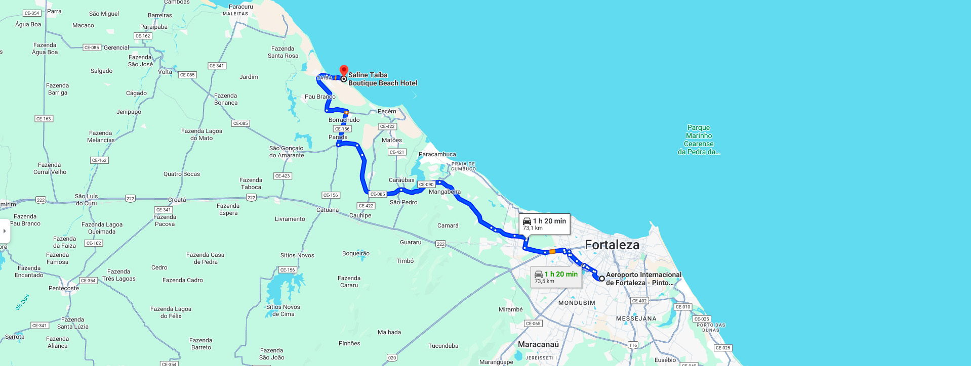 O Saline Taíba fica 1h:20 de carro do aeroporto.